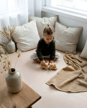 Toddlekind creates beautifully grounded pieces that bring calm to real family living. Our playmats, accessories, and soft-home essentials blend quiet luxury with life-proof function — crafted with intention, thoughtfully designed, and made to live comfortably in your home.