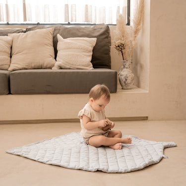 Unsere Leaf Playmats aus Bio-Baumwolle bieten eine natürlich weiche und sichere Fläche zum Spielen, für die Bauchlage oder zum Nappen.